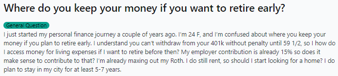 1/ Question: Where do you keep your money if you want to retire early?